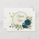 Beautiful romantic wedding thank you card featuring teal blue and beige flowers and some leaves .