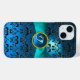 TEAL BLUE BLACK DAMASK GEMSTONE MONOGRAM Case-Mate iPhone CASE