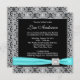 Teal Blue Black Lace Womans 50th Birthday Party Invitation