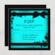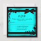 Teal blue black ribbon grunge wedding RSVP Invitation