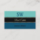 Make a lasting impression with this stylish business card design featuring teal and blue coloured stripes on black with pretty shimmery small gold decor.