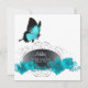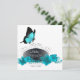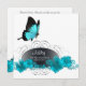 Elegant black and teal blue butterfly girls graduation announcements. Pretty teal blue butterfly with teal blue flowers and elegant scroll name tag black and blue graduation announcement is easily personalized by adding your details to the front and back by adding your event details, font style, font size & colour, and wording. Please note - all of the invitation designs you will find on Zazzle are printed graphics on flat paper stock with no actual jewels, bows, raised, embossed, or added parts or pieces.
