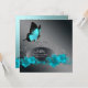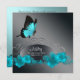 Elegant black & teal blue butterfly girls graduation announcements. Pretty black & teal blue butterfly with teal blue flowers and elegant scroll name tag black & blue graduation announcement is easily personalized by adding your details to the front and back by simply choosing the "Customize it!" button to begin adding your event details, font style, font size & colour, and wording. Please note - all of the invitation designs you will find on Zazzle are printed graphics on flat paper stock with no actual jewels, bows, raised, embossed, or added parts or pieces.