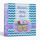 Cute Baby Carriage Teal Chevron Baby Book by ITD Colours Galore features our unique candy colour blue and white zig zag pattern with our signature texture in the background with a textured purple band and decorative centerpiece featuring a cute vintage baby pram holding a cuddly teddy bear. On the back the hot pink chevron pattern continues with a purple band that has a pattern of cute baby toys running along through it. Keep track of all your baby's first, starting with your chevron pink baby shower.
