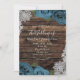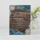 Teal Blue Floral Roses Rustic Wood Lace Wedding Invitation