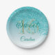 Teal Blue Glitter, 16 Glitter, Sweet 16 Birthday Paper Plate
