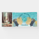Festive Banner with Teal Blue Glitter, Party Balloons and Photo.
