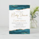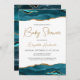 Teal Blue Gold Agate Baby Shower Invitation