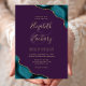 Teal Blue Gold Agate Corners Purple Wedding Invitation