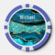 Teal Blue Gold Aqua Marble Custom Name Poker Chips