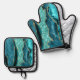 Teal Blue Gold Glitter Custom Name Aqua Turquoise Oven Mitt & Pot Holder Set