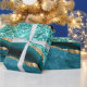 Teal Blue Gold Marble Custom Name Wrapping Paper