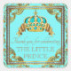 Prince baby shower stickers with pretty gold swirls and crown on a teal blue background. These teal blue and gold prince baby shower sticker are easily customized with the text of your choice.
