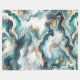 Teal Blue Gold White Modern Marble Agate Fleece Blanket