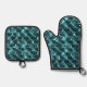 Teal Blue Green Abstract Glam Oven Mitt & Pot Holder Set