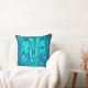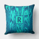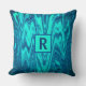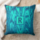 Teal Blue Green Abstract Monogram Initial Cotton Throw Pillow