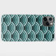 Contemporary seafoam, seaglass, teal blue green, and black ombre coloured retro abstract geometric Japanese Chinese Seigaiha scales pattern design. Beautiful, modern, and cool cover for the trend-savvy and art-loving hip trendsetter, artsy motif lover. This design is available in Apple iPhone 6, 7, and 8 Plus, 10 or X, XR, XS, 11, 12, 13, 14 Mini, Plus, and Pro Max cellphone cases. Show off your style, look fashionable, and feel stylish with a unique design on a mobile device accessory of your choice.