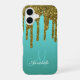 Teal Blue Green - Gold Glitter Drips Personalized iPhone 16 Case