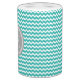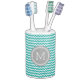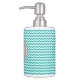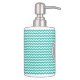 Custom soap dispenser and toothbrush holder in turquoise blue, charcoal grey and white chevron zigzags stripes pattern, adds a personal touch to any bathroom.