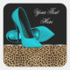 Elegant teal blue high heel shoes with leopard background party favour labels, envelope seals & stickers. Customize with your text, font style & size.