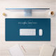 Teal Blue Minimalist Monogram Desk Mat in script and simple font.