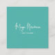 A sleek and stylish square business card featuring a solid and elegant TEAL blue background with your name or company name in an elegant signature script. Fully customizable to match your brand identity—edit the background colour, text, and logo effortlessly.
