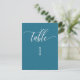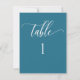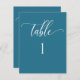 Modern and elegant minimalist style teal blue number with modern hand written calligraphy details. Clear area on the bottom allowing you to use all kinds of table number holders without obstructing the number. Modern medium size card for a sleek, simple look. Available in a variety of colours. Have all tables in same colour, or mix several colours complimenting your colour theme. Coordinating table seating plan cards with guest names, as well as slim guest name place cards also available.