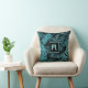 Teal blue monogram tropical palm leaf pattern bold throw pillow