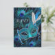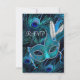 Teal Blue Peacock Mask Masquerade Party RSVP Card