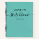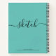 Teal Blue Black Elegant Personalized Sketchbook with Your Name in Hand Lettered Script Font Typography. Elke Clarke© Add you name or monogram or text using the customize menu.