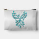 Teal Blue Phoenix Rises on Silver Accessory Pouch