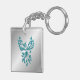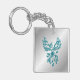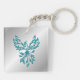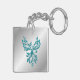 Teal Blue Phoenix Rises on Silver Keychain