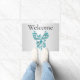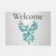 Teal Blue Phoenix Rises on Silver Welcome Doormat
