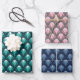 TEAL BLUE PINK GRAY ART DECO PATTERNS WRAPPING PAPER SHEET
