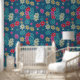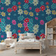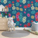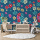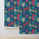 Teal Blue Red Hot Pink Beige Flowers Art Pattern Wallpaper