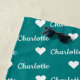 Teal Blue Personalized Name Pattern Beach Towel with Heart Design Summer Beach Bath Towel.