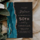 Teal Blue Rose Gold Agate Dark 50th Birthday Invitation