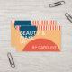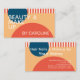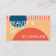 Beautiful artistic makeup artist business card. With contemporary teal blue, rust, orange and ivory off-white coloured round circles and stripes pattern on a blush pink background combined with a modern minimalist font. Click on 'Personalize' to find the template ready to be customized with your unique business name, profession and contact information, and text of your choice. This particular pretty and unique design was made for those who like bright colourful pastels and sophisticated classic geometric abstract designs.