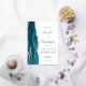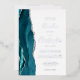 The left-hand edge of this elegant modern wedding invitation features a teal blue watercolor agate border trimmed with faux silver glitter. The customizable text combines handwriting, copperplate and italic fonts in real silver foil on a white background. The reverse side features a matching teal and silver agate design.