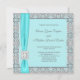 Teal Blue Silver Wedding Invitation