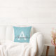Teal Aqua Blue Sparkle Glitter Monogram Name and Initial Pillow. The pillow makes the perfect gift for someone decorating her room in ice blue.