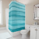 A pretty teal blue watercolor shower curtain with lines and brushstrokes inspired by water. Perfect for summer time!