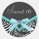 Elegant teal blue zebra sweet sixteen stickers. This pretty teal blue zebra sticker is easily customized for your event by simply choosing the "Customize it!" button to begin adding your event details, font style, font size & colour, and wording. Please note - all of the stickers, cards and invitation designs you will find on Zazzle are printed graphics with no actual jewels, bows, raised, embossed, or added parts or pieces.