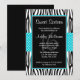 A sassy zebra print and teal blue polka dot pattern is featured on this trendy sweet sixteen birthday invitation.