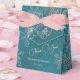 Blush pink line art cherry blossoms on a teal background. With a thank you expression in an elegant calligraphic script and custom bride and groom names and the wedding date.