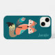 A colourful, cute fox wears boho style tribal attire and holds a pattern feather. The image, in orange and turquoise, is placed on a darker teal background. Your name or other text is in matching light teal at the top. Unique and trendy!