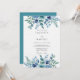 A watercolor-inspired botanical design unfolds with lush leaves and delicate blooms in shades of teal and deep blue. This artistic composition evokes a sense of natural elegance and ethereal beauty for your special day. The vibrant yet soft palette sets a tranquil and romantic mood.