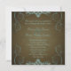 Teal & Brown Texture Gold Scroll Invitation