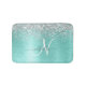 Teal Brushed Metal Silver Glitter Monogram Name Bath Mat
