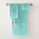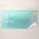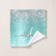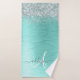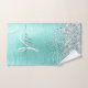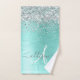 Teal Brushed Metal Silver Glitter Monogram Name Bath Towel Set